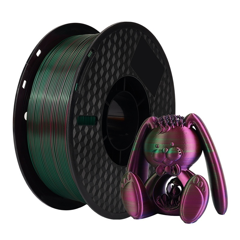 Материал имеет блестящую поверхность, что дает возможность создавать детали с уникальным шелковистым эффектом. PLA Silk Dual-Color — надежный и прочный материал, устойчивым к внешним воздействиям. Он подходит для использования в различных областях, включая производство промышленных запчастей и создание предметов бытового использования.