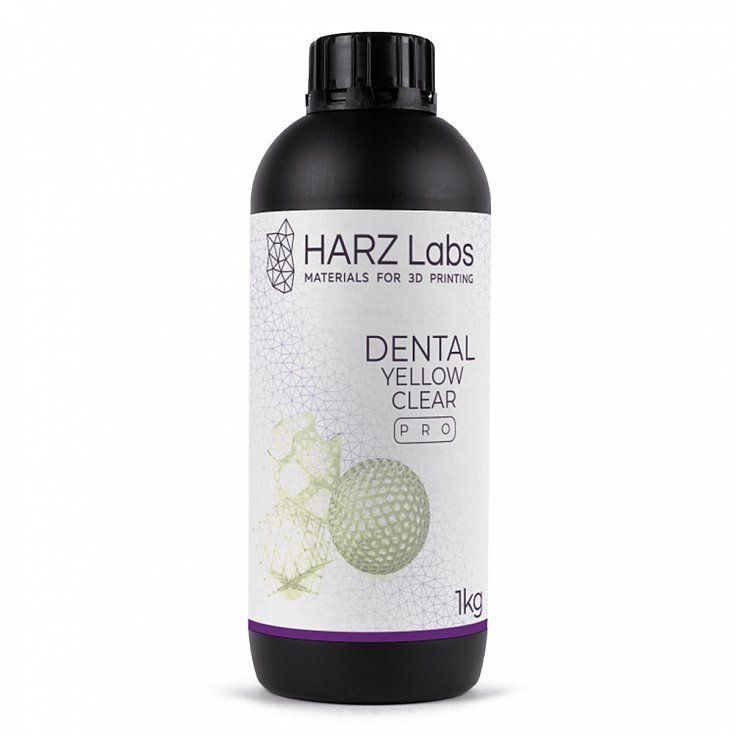HARZ Labs Dental Yellow Clear Pro представляет собой твердую PMMA- подобную смолу, изготовленную из биосовместимого сырья, которое используется в стоматологических пломбах.