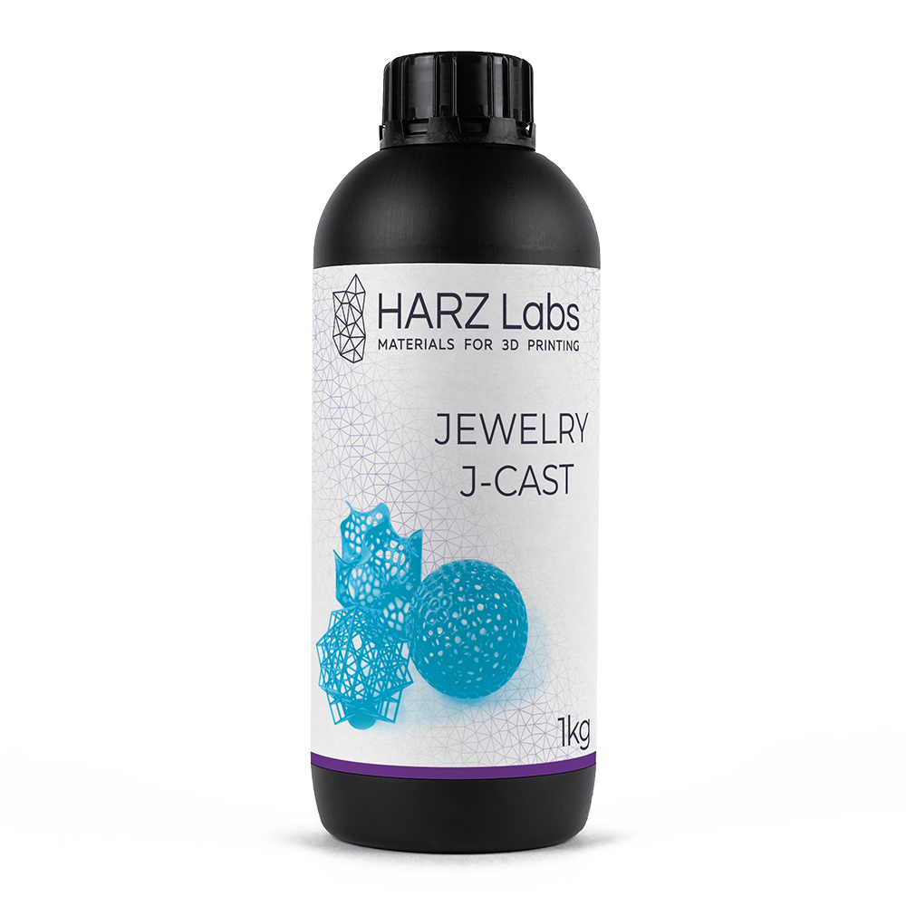 Фотополимерная смола HARZ Labs Jewelry J-Cast используется для печати ювелирных моделей, которые в дальнейшем подвергаются прямому литью. Благодаря низкому коэффициенту температурного расширения и практически нулевому содержанию золы (менее 0,1%), можно использовать гипсовые формомассы и увеличить качество отливаемых изделий.