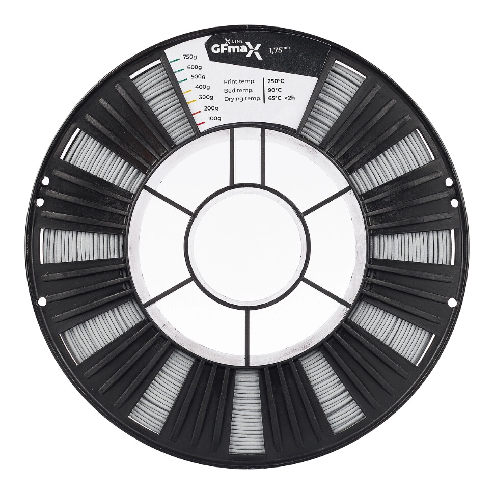 Пластик GF MAX— инженерный армированный термопластик, способный выдерживать большие нагрузки. В основе этого композитного материала лежит PETG, наполненный короткими армирующими волокнами. GF MAX может использоваться для изготовления функциональных прототипов и прочностных изделий.