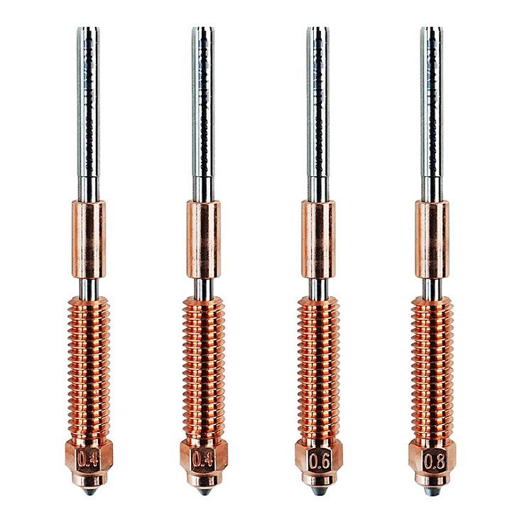Набор быстрозаменяемых сопел Unicorn для 3D принтеров Creality K1(2024), K1 Max (2024), K1C, K1 SE, Ender-3 V3, Ender-3 V3 Plus. Цельнометаллическая конструкция позволяет осуществлять быструю замену и монтаж.